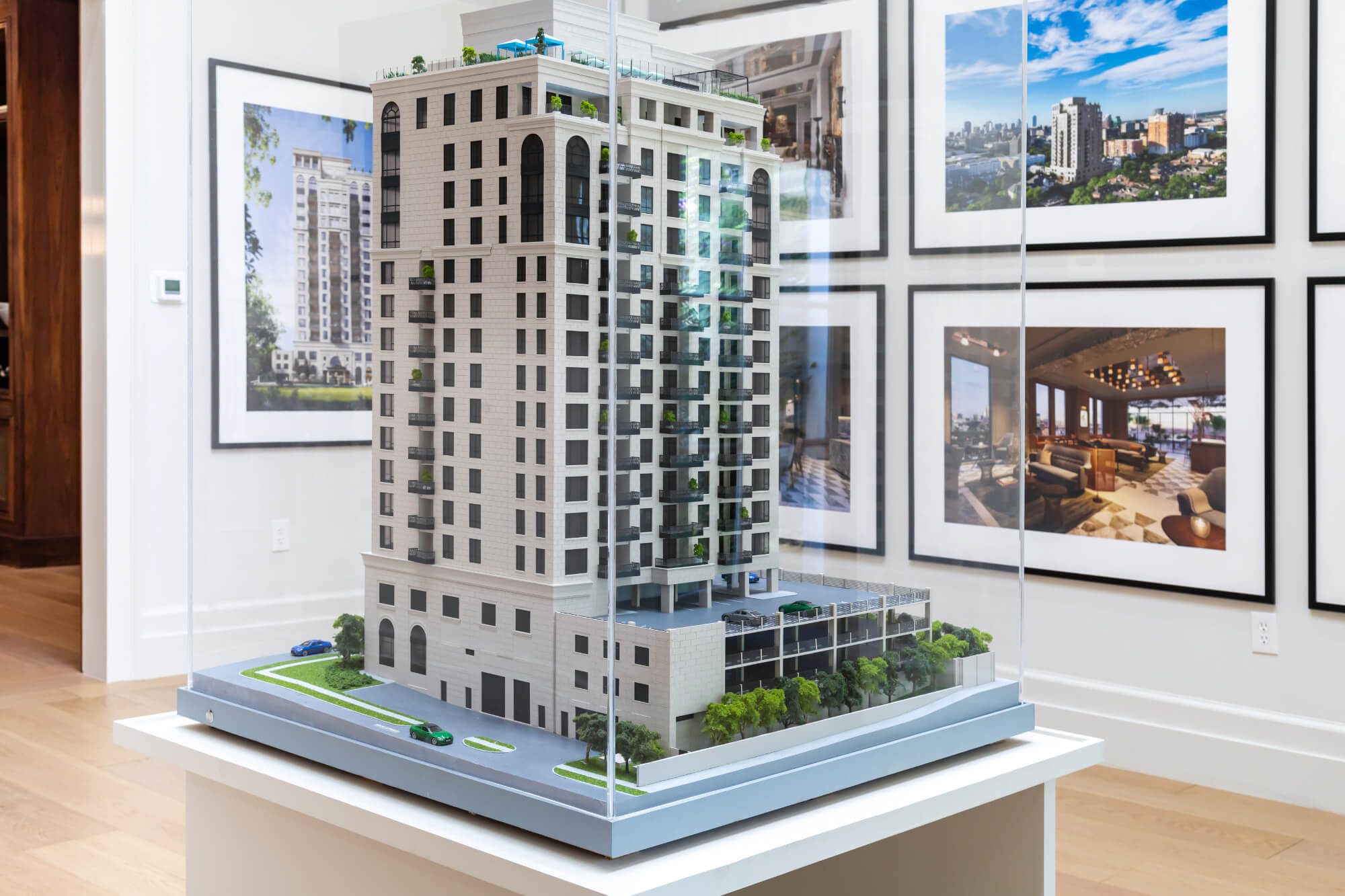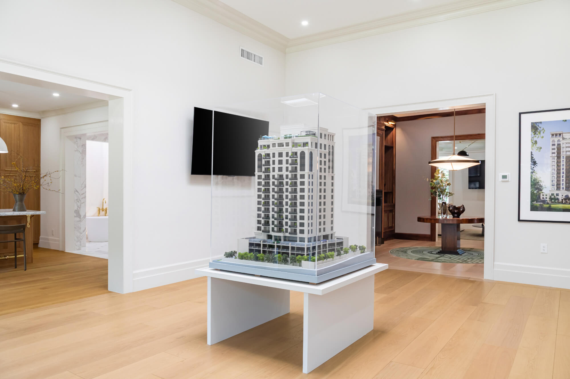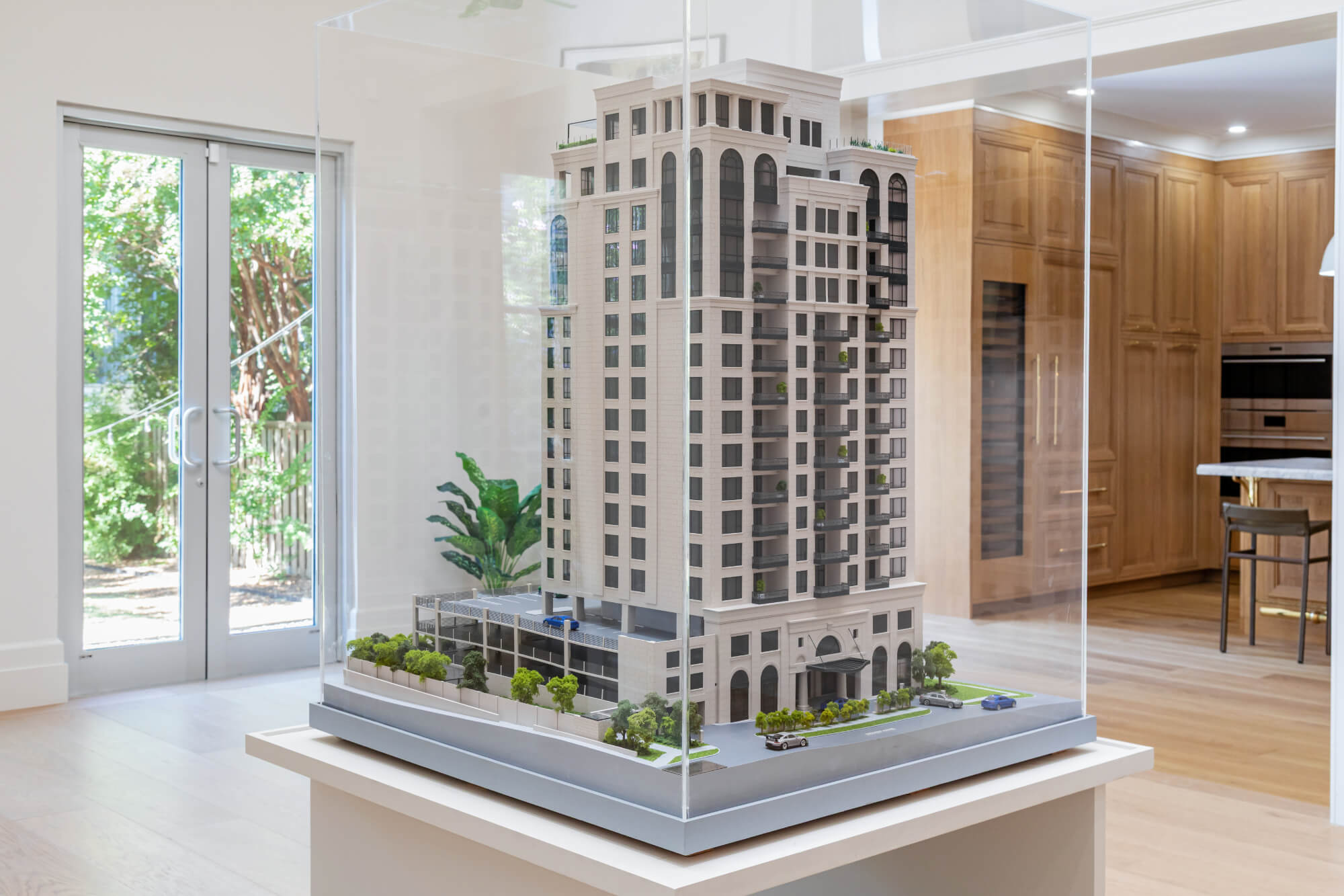 PREMIER3D LLC was commissioned by USAI, to produce a full, 1:64 scale model of the development displayed in the Display Center. The model included lighting, full cabinetry integration and on site installation.