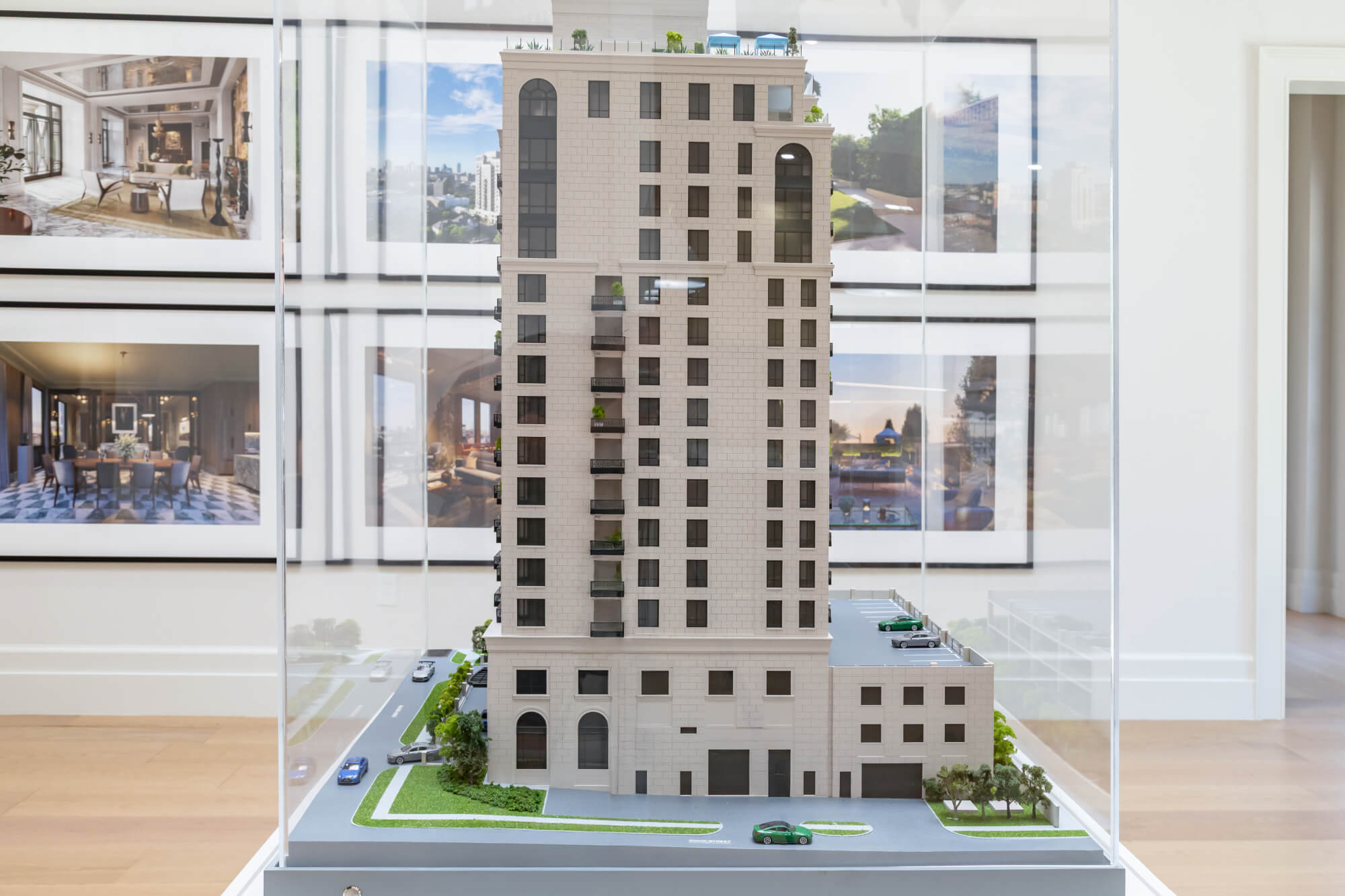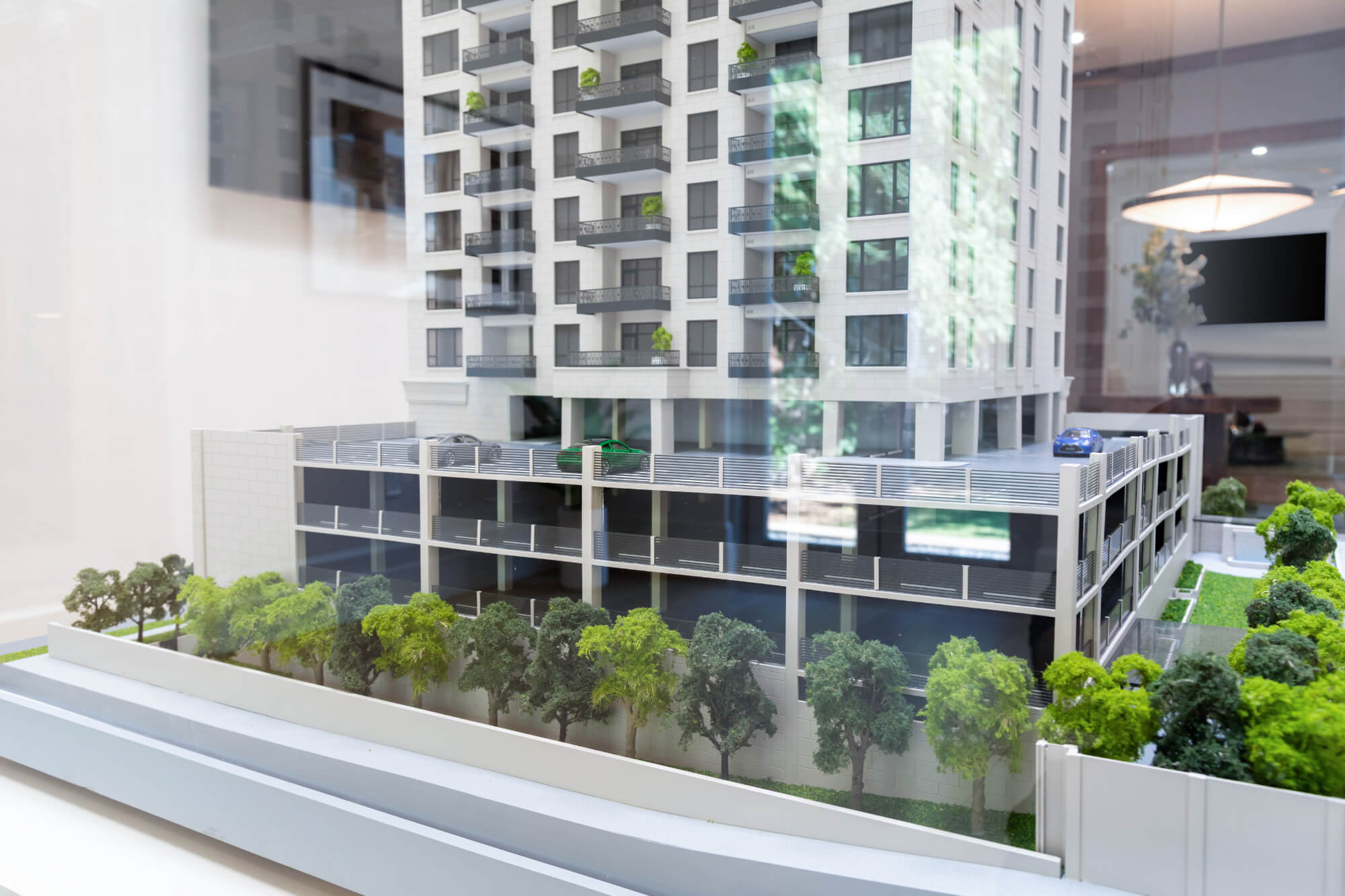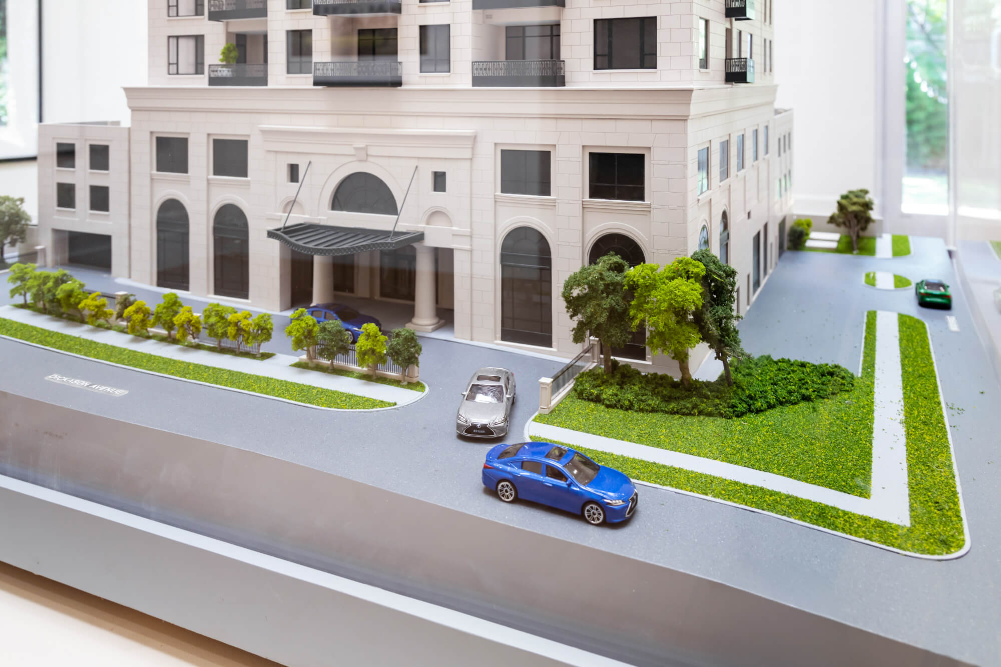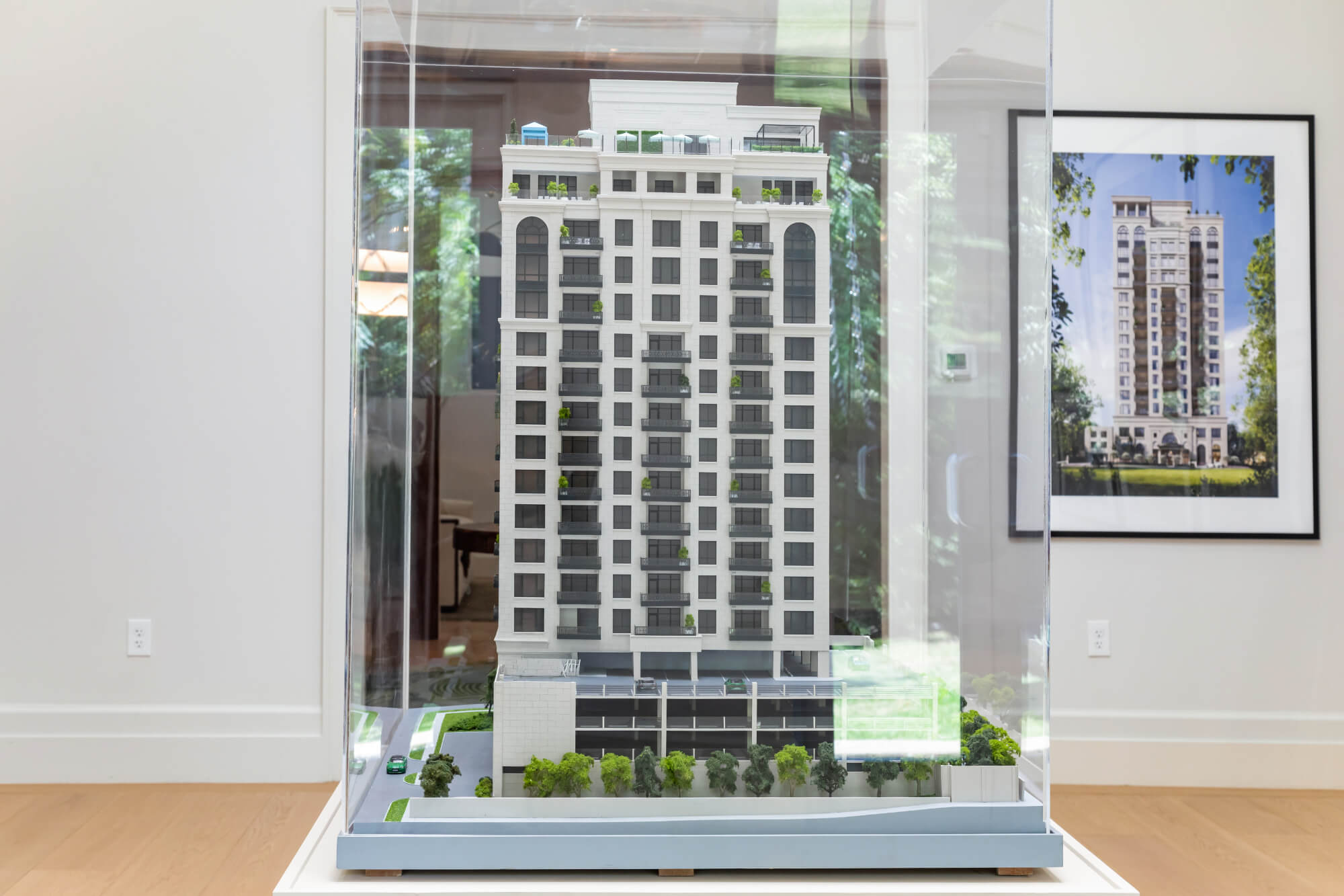 PREMIER3D LLC was commissioned by USAI, to produce a full, 1:64 scale model of the development displayed in the Display Center. The model included lighting, full cabinetry integration and on site installation.